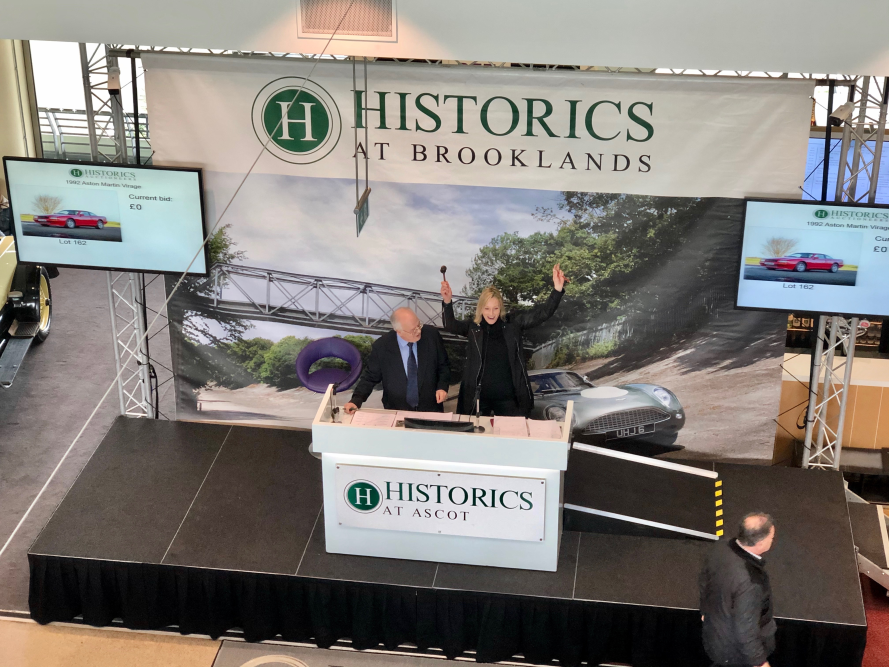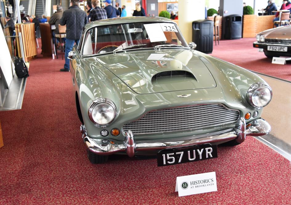 Beside the remains of the Brooklands circuit the day before, Aston Martins also topped the Historics prices in the multi-storey Mercedes World showrooms, where a within guide £608,300 was available for a 1968 DB6 Volante auto in receipt of an 8 year restoration and the required £390,500 was bid for a 1960 DB4 Series 2.