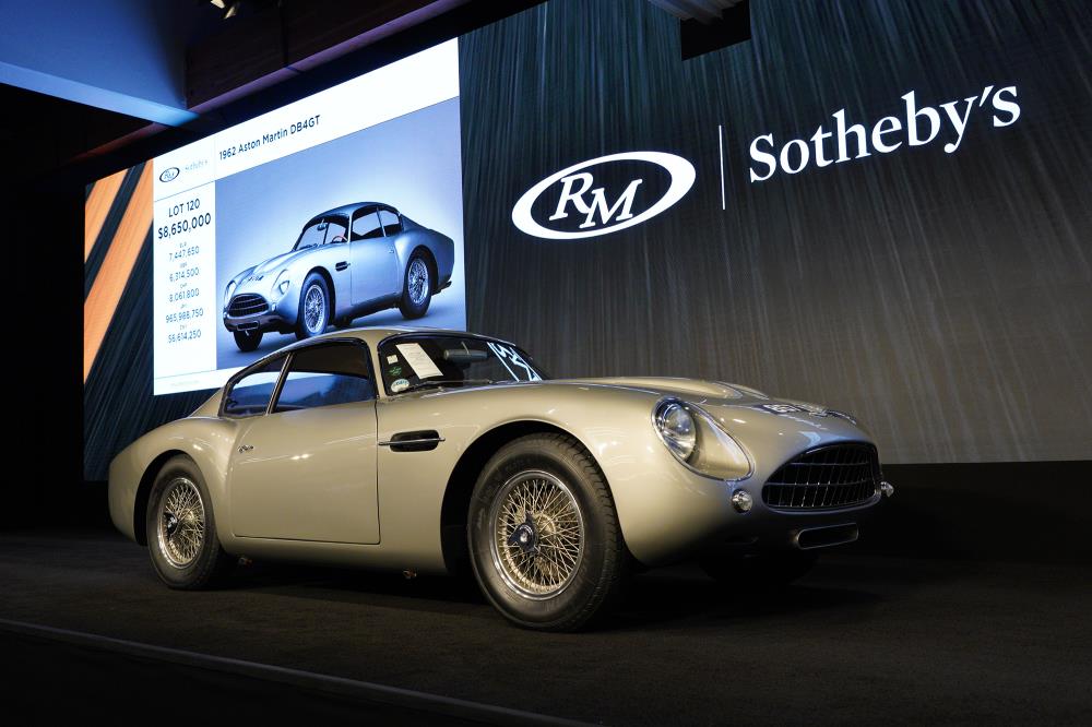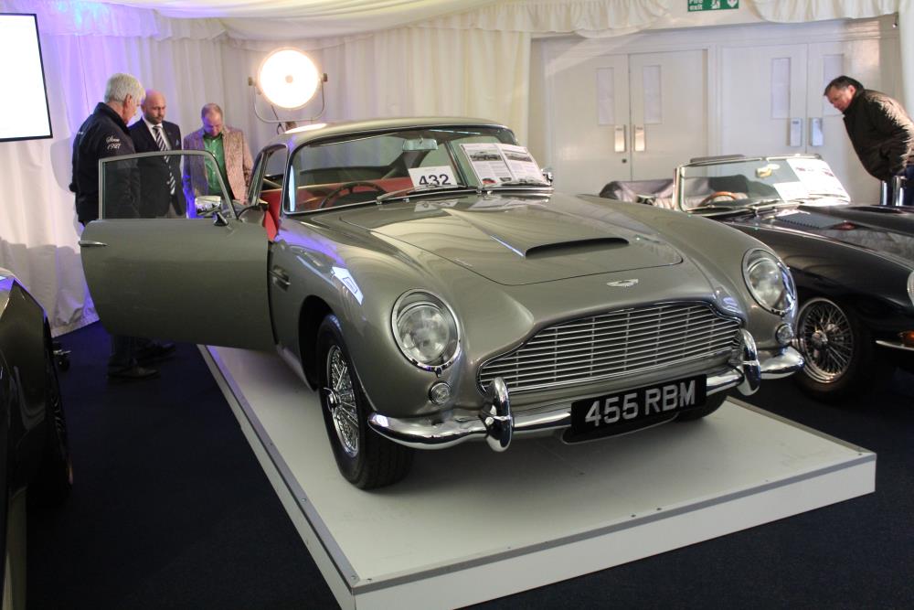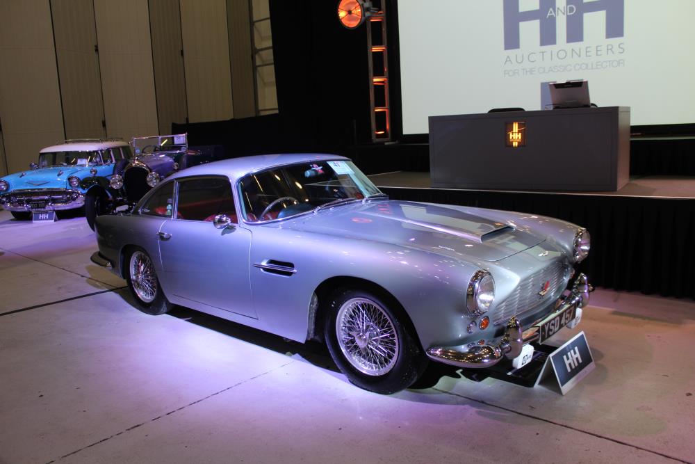 007 movie DB5 and DB5 Estate become world record breakers when driven across RM Sotheby’s stage in California